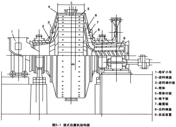 在自磨机的规格和转速固定的条件下,物料的给入量和大小矿块的配比直接影响磨矿过程,生产中应予注意。生产实践证明:物料充填率在30%~40%之间为宜。如果给矿量控制不好,自磨机内料位高低产生波动,有可能引起“胀肚”(料位过高)或“空肚”(料位过低)现象。所以,要求生产中给矿数量和给矿粒度配比上要力求保持稳定,而且要求两者同时稳定,如果只保持数量稳定,但粒度配比不当,生产也会不正常。粒度配比,主要是大块矿石不能少,如果在特殊情况下大块矿石不足时,可少量加点大钢球。大块矿石比例多了也不好,但少了生产效果也不理想,应根据各自矿石性质,由实验和生产实践来确定。